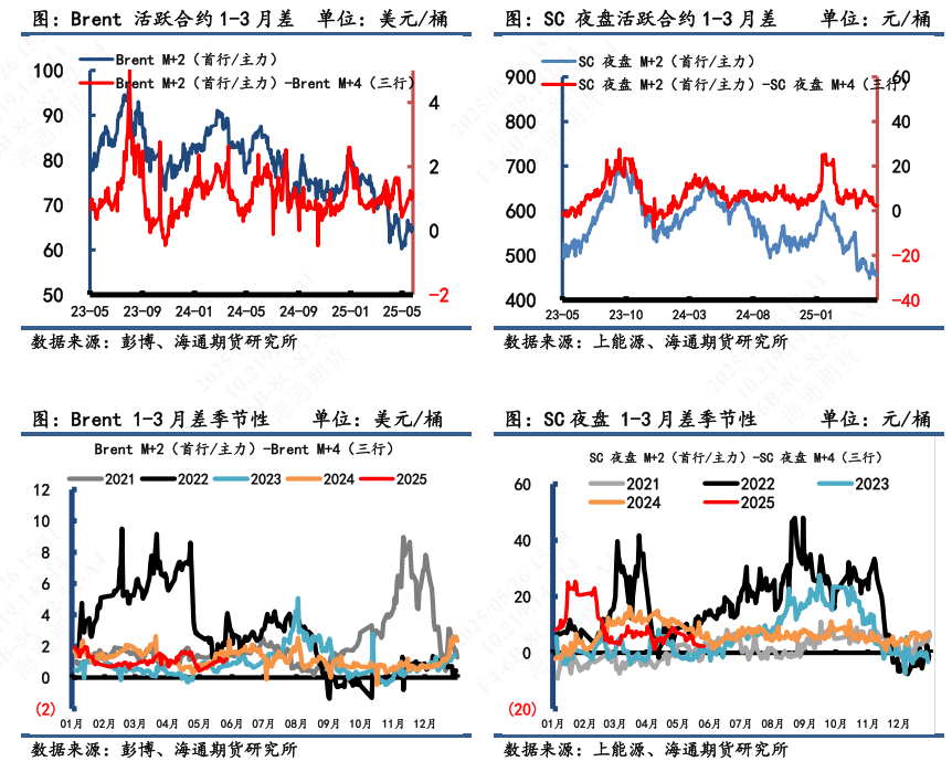 ①月差来看,本周欧美原油月差相对内盘抗跌,内盘延续弱势。内盘受国内需求弱产生基本面宽松影响而延续跌势。